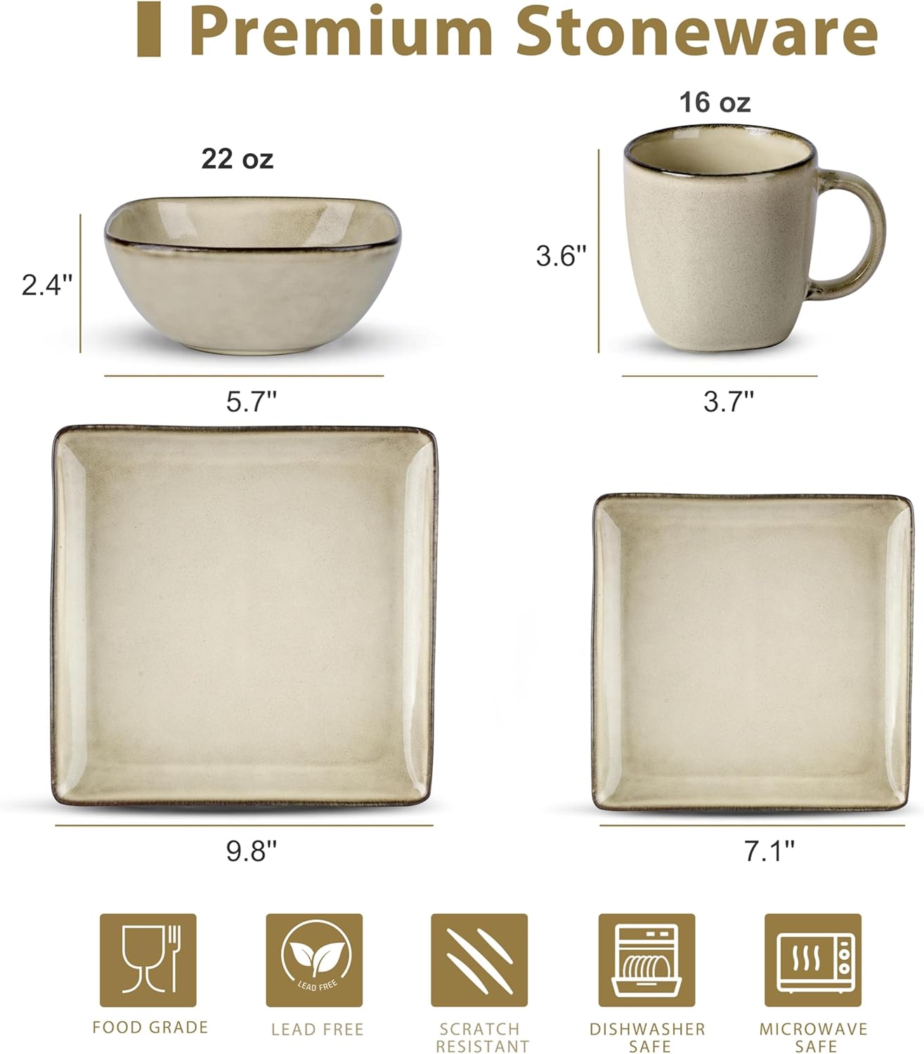 - 16 Piece dinnerware sets for 4, includes 4 dinner plates, 4 salad plates, 4 cereal bowls, 4 mugs, a complete set meet your dining needs for serving various foods and beverages, perfect for all dining occasions, from casual family daily meals to formal gathering
