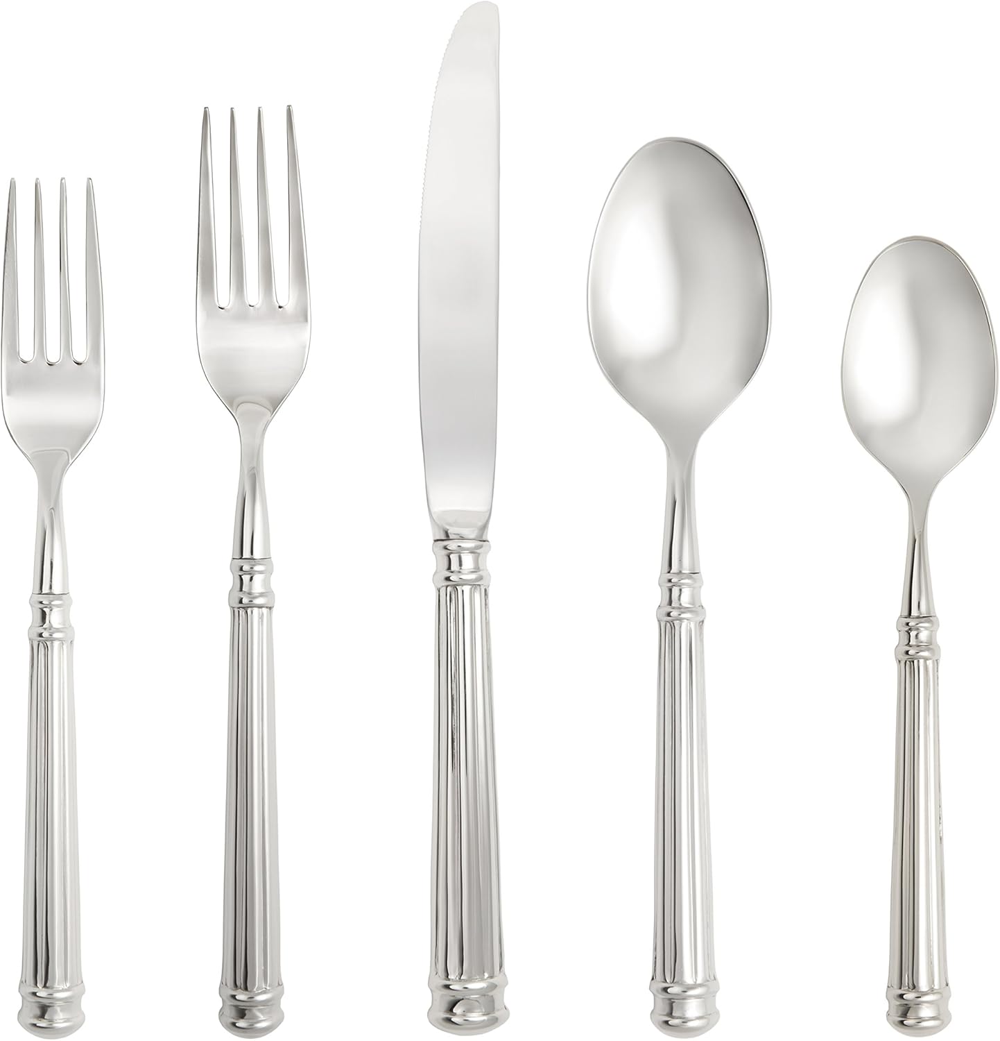 - Set includes: 20-piece flatware: 4 table forks, 4 salad/dessert forks, 4 table knives, 4 dessert/soup spoons, 4 coffee/teaspoons, Color: Mirrored, Material: 18/10 Stainless Steel