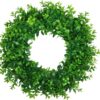 - 【All Season Wreath】 boxwood wreath is suitable for front door, wall, indoor, outdoor, window, fireplace, cabinet, farmhouse, living room, porches parties wedding, holidays and festival celebrations. The green round wreath can be used all year round, bringing a sense of nature and vitality to your home
