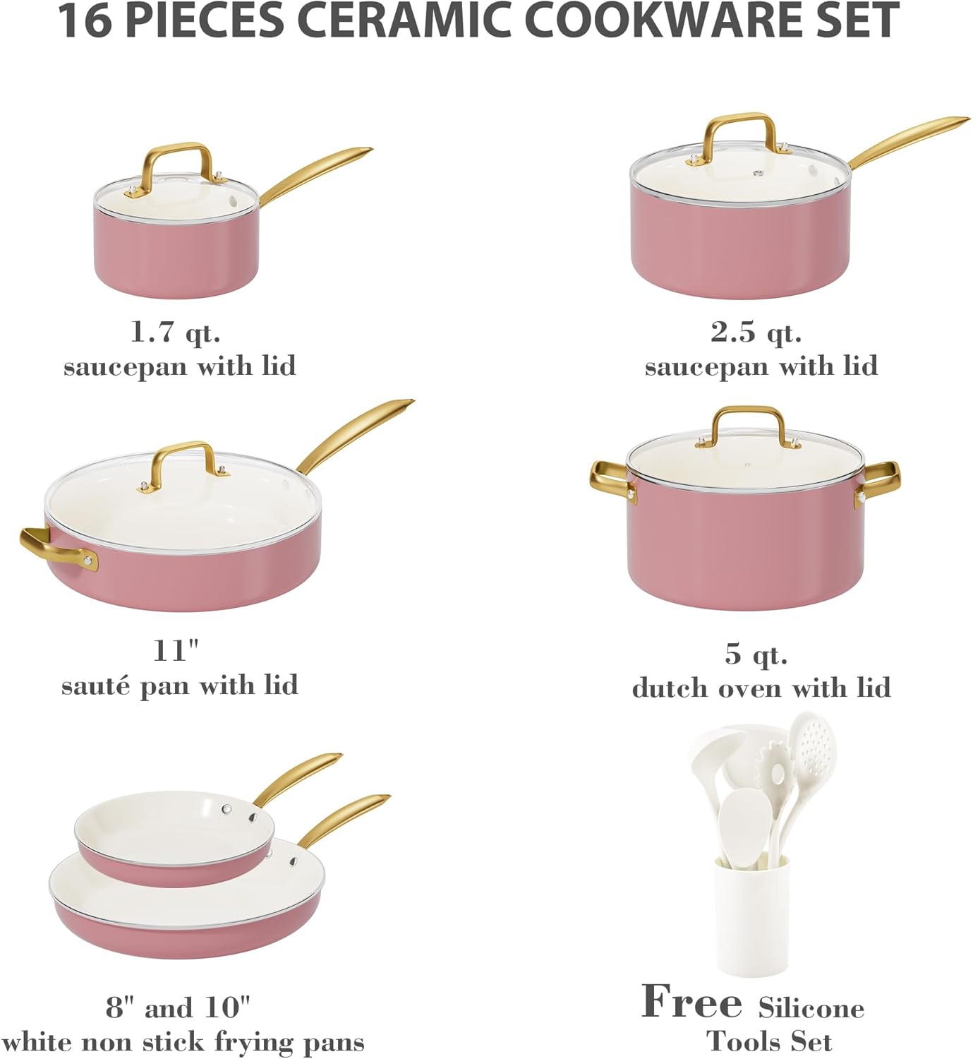 Ceramic Pots and Pans Set -  Non Toxic Cookware Set with Cooking Utensils Set, Kitchen Cookware Sets Dutch Oven Pot Saucepan Set Sauté Pan Frying Pan Set for Cooking Pot Gold Kitchenware Gift