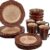 Round Decorated Stoneware Scallop Embossed Dinnerware Dish Set, 16 Piece,